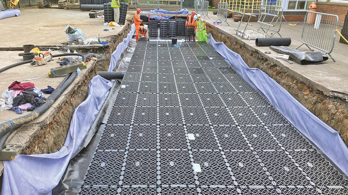 The system was designed to store water in the soil and crate system from Polypipe Civils before releasing it back into the sewer network.
