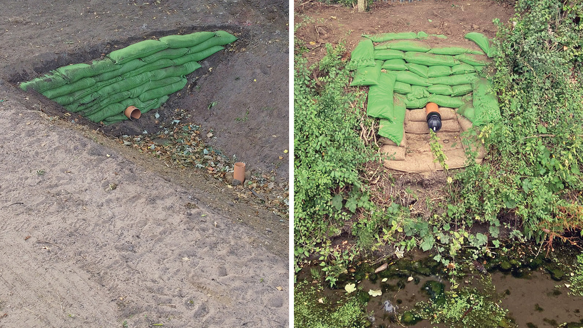 A vegetated headwall system from Geogrow was chosen over a conventional concrete headwall for the outlet from the attenuation pond, where it discharges into the watercourse. This decision was driven by the need to limit carbon emissions from cement production and to enhance the aesthetic and ecological value of the site. Geogrow bags were also used for the headwall at the inlet of the swale.