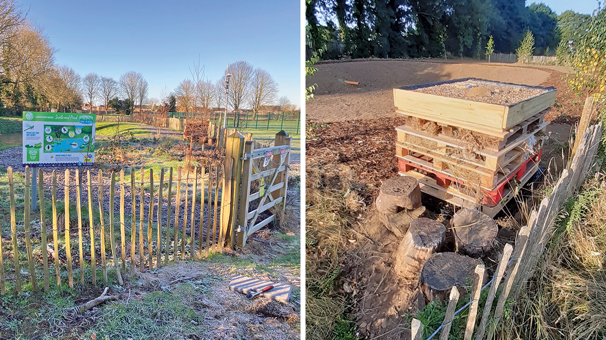 (left) Educational signage and (right) a bug hotel – Courtesy of Mott MacDonald Bentley