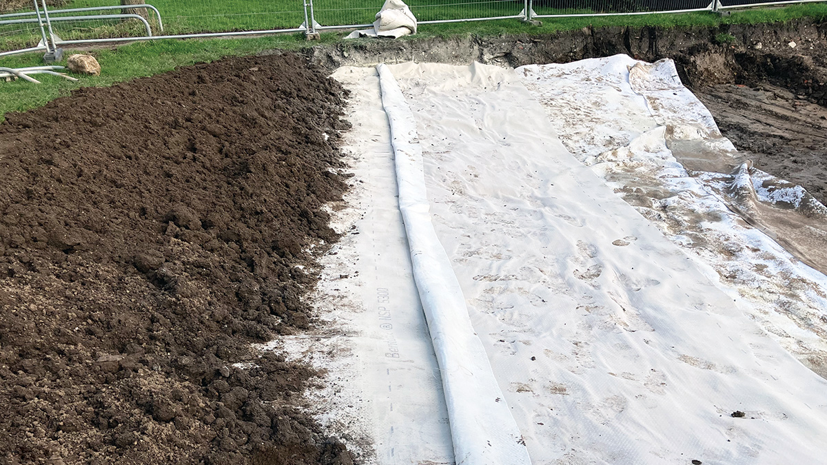 Installation of the liner and underdrainage layer – Courtesy of Mott MacDonald Bentley
