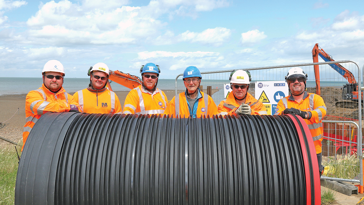 A total length of 950m of polyethylene pipe (1200mm OD SDR 26 PE100) was manufactured by Pipelife Norge AS, in two lengths of 475m that were then towed from Norway by sea to the sheltered water adjacent to the old Kings North Power station on the River Medway for preparation and assembly.