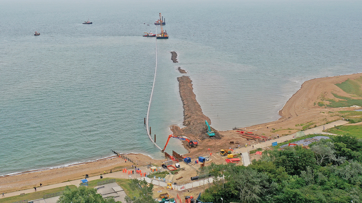 The land and marine works were managed from a site establishment within the existing Swalecliffe WwTW, which allowed direct access onto the beach and foreshore. Due to the sheltered location of the site and good beach access, Van Oord employed a self-propelled RIB survey vessel that could be mobilised from the beach at the work site. This allowed surveys of the dredging progress and pipe installation to be undertaken and processed quicker than working from an adjacent port or harbour.