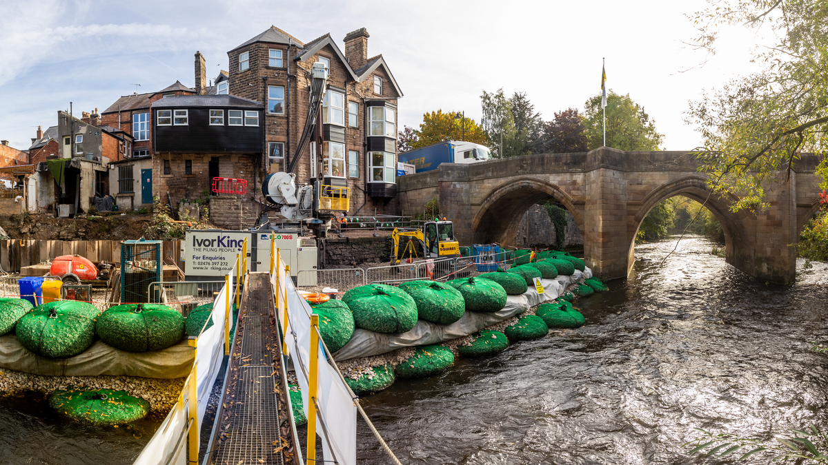 Lady’s Walk is a picturesque footpath on the bank of the River Wansbeck in Northumberland, connecting Morpeth town centre with the nearby village of Mitford. During the rainy Easter weekend 2018, 35m of river retaining wall and footpath subsided and fell into the river.Northumberland County Council engaged the services of Ivor King to install a sheet piled retaining wall in to order to stabilise the land, enabling necessary repairs to be carried out and ultimately for the public footpath to be reinstated.