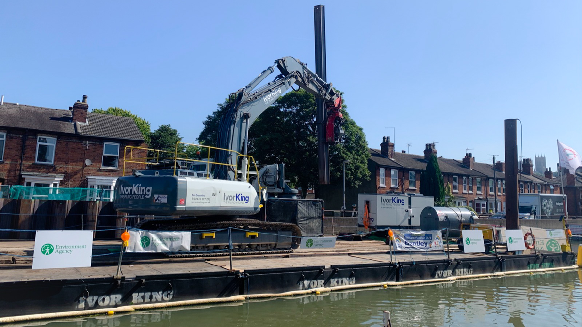 Installation of a sheet pile retaining wall for repairs to a subsided river bank to enable reinstatement of public footpath