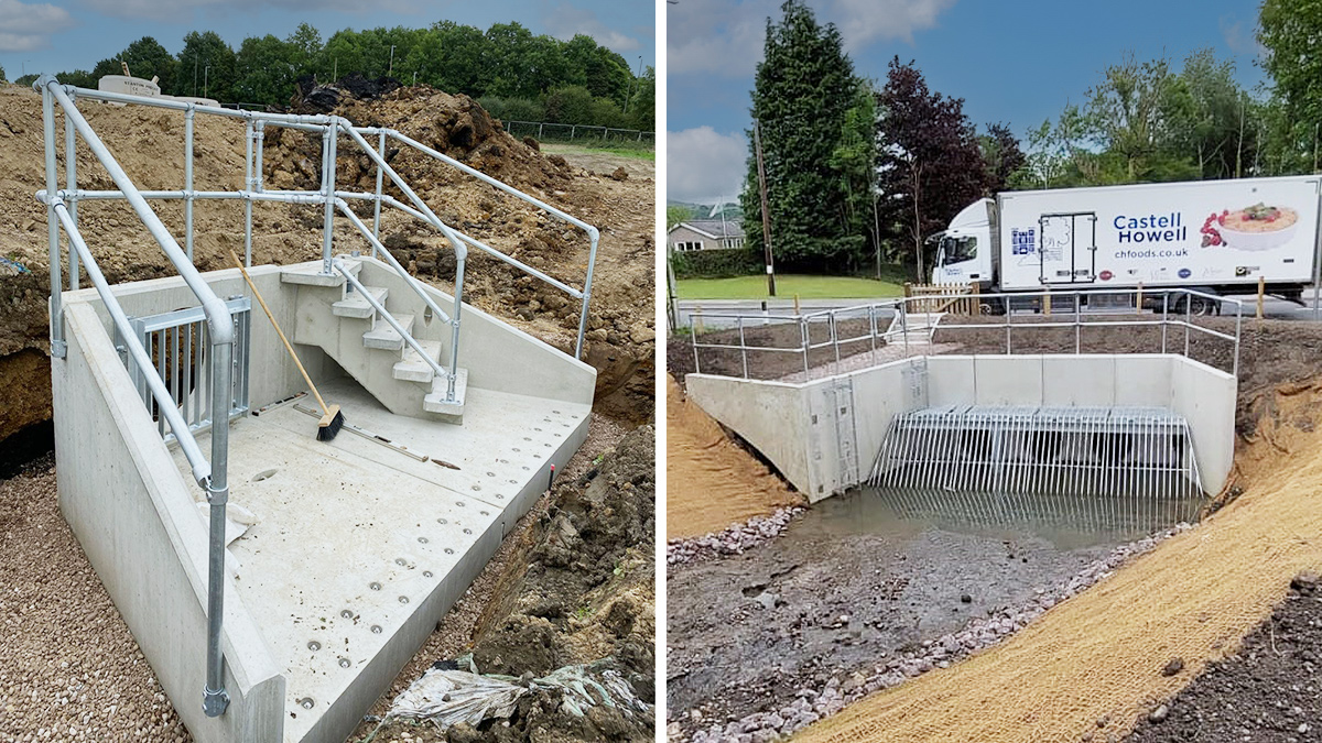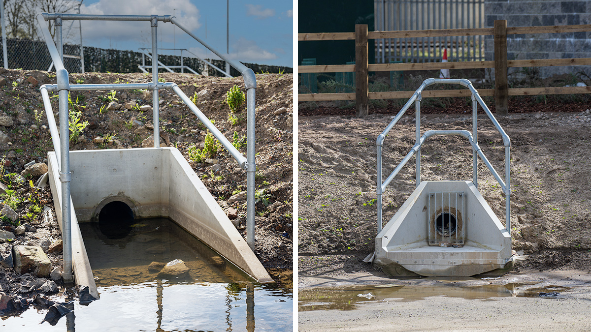 Our headwalls arrived to site with the kee klamp handrail, SFA outfall safety grille and stepped baffle block already fixed to the headwall. Having the accessories factory fitted ensures a quicker and safer installation process.