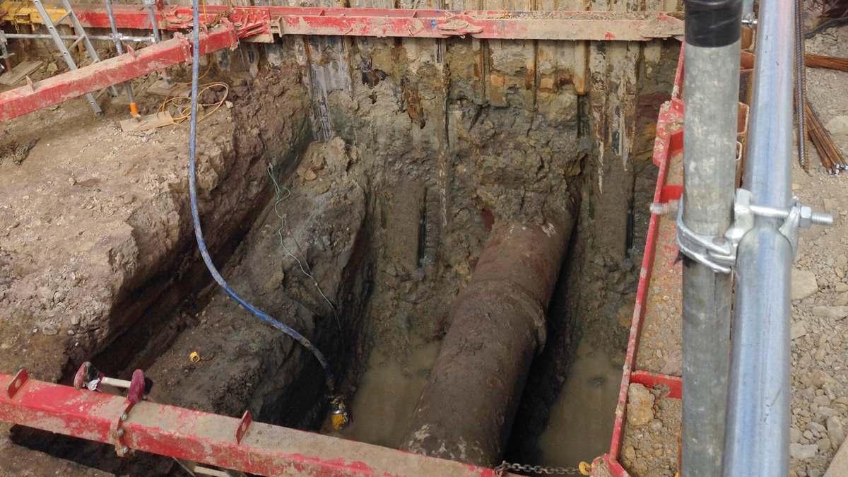 To meet the design loading & deflection criteria, our 406 UC brace was utilised, supported by our 400, 600 and 1000 props. The 406 UC brace is a high-strength, high-stiffness brace – it the ideal solution for a cofferdam of this size. The large 1000 series props were built up, incorporating 400 series extensions at the ends to ensure that the walls of the structure would not clash with the prop.