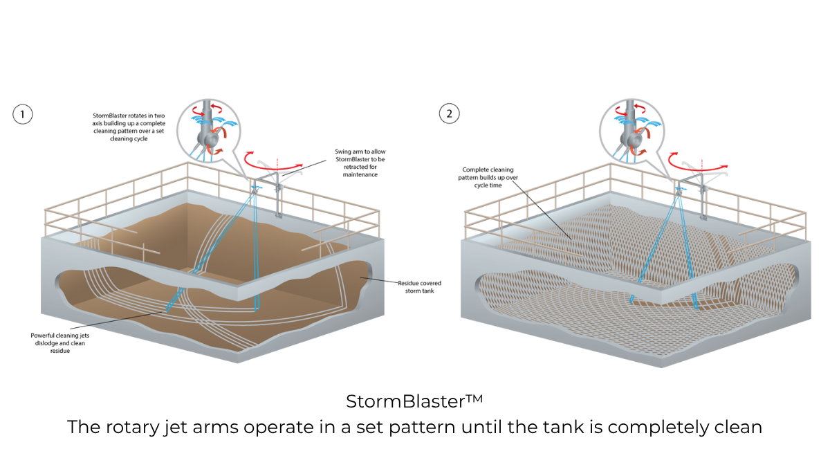 Storm water attenuation tanks can cause serious smell pollution if left improperly cleaned after usage. The StormBlaster tank cleaning system is a more effective alternative to tipping buckets, swirl eductors and manual entry cleaning.