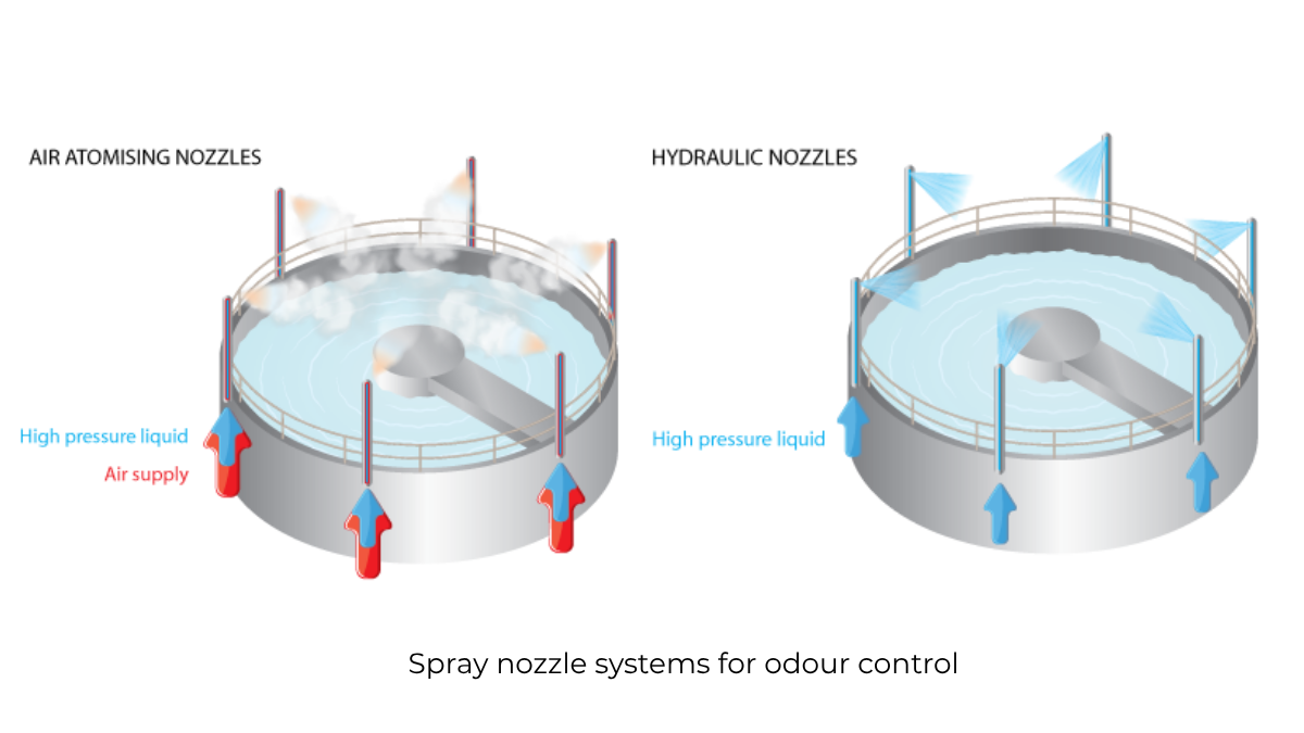 The use of sprays to knock down and neutralise odour is a common application for our spray nozzles. Nozzles are either used to directly treat odour particles in the air or as part of scrubber systems.